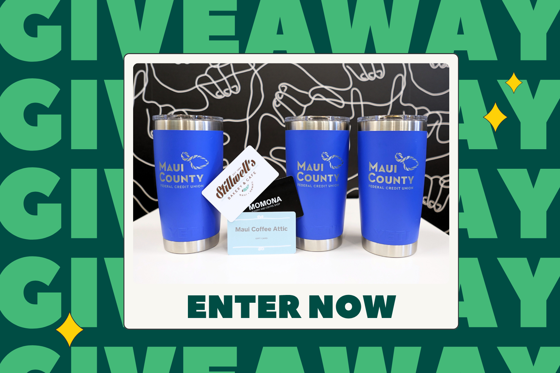 In celebration of International Credit Union Day and its theme of Corporation for a Prosperous World we’re supporting local businesses with a special giveaway for $25 gift cards to local Maui favorites along with a limited-edition 20oz Yeti tumbler.