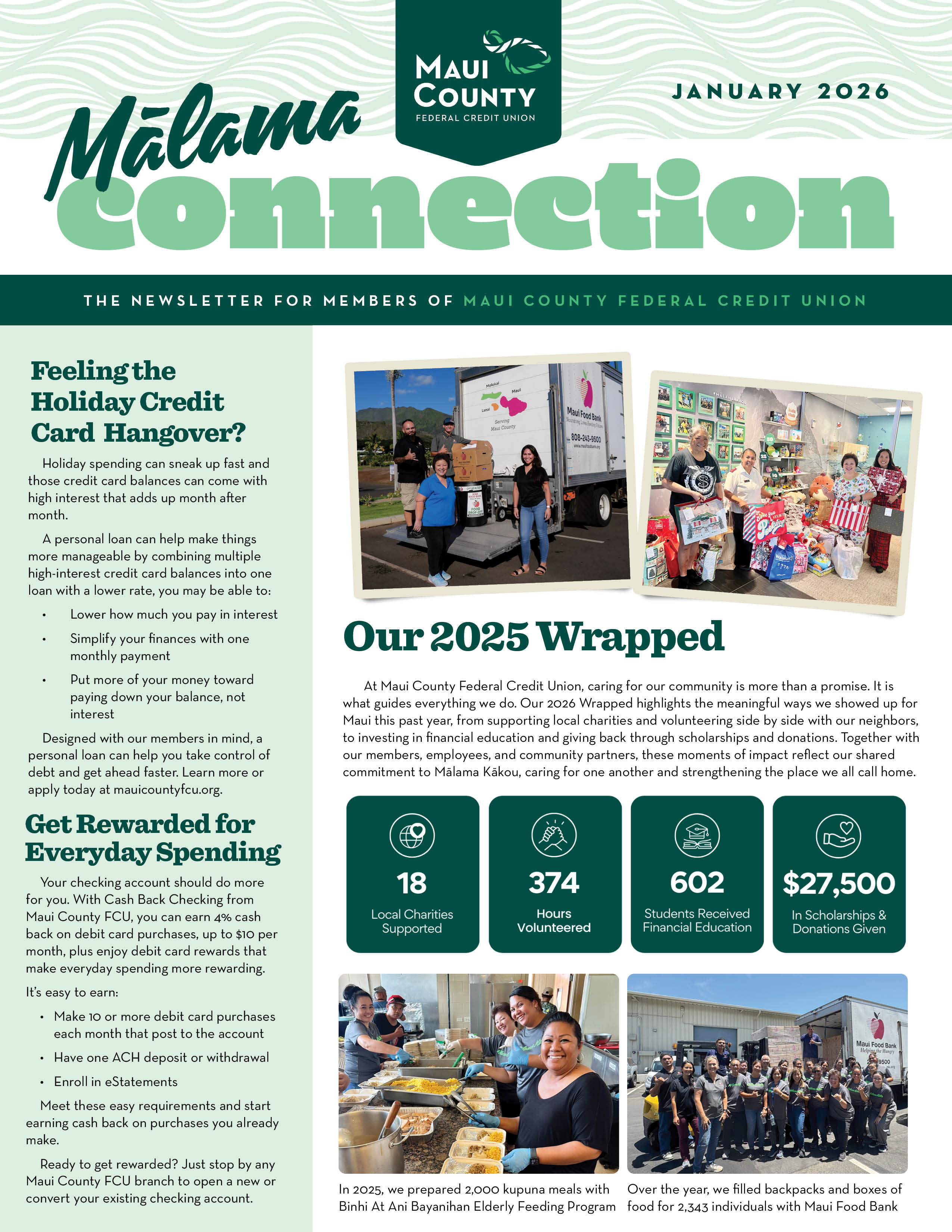 Our newsletters are packed with timely articles on financial topics, inspiring stories about your fellow members, and the latest info on credit union services and community outreach. Read everything there is to know about Maui County FCU.